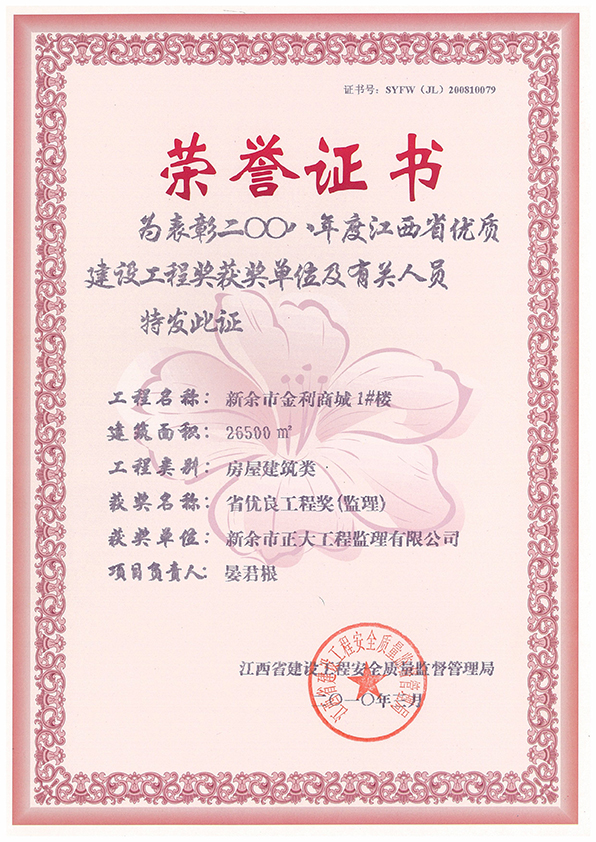 新余市正大工程監(jiān)理有限公司依托新余市建筑設(shè)計(jì)院,于1995年11月成立,是新余市開展監(jiān)理工作最早的監(jiān)理單位,本公司具有建設(shè)部核發(fā)的房屋建筑工程甲級(jí)監(jiān)理資質(zhì)、市政公用工程乙級(jí)監(jiān)理資質(zhì)、國(guó)家人防辦核發(fā)的人防工程監(jiān)理乙級(jí)資質(zhì)。我公司始終堅(jiān)持“客戶至上、質(zhì)量第一、信守合同”的經(jīng)營(yíng)理念;追求“為社會(huì)創(chuàng)造價(jià)值、為業(yè)主創(chuàng)造效益、為自身謀求發(fā)展”的經(jīng)營(yíng)宗旨;遵循“守法、誠(chéng)信、公正、科學(xué)、優(yōu)質(zhì)、高效”的工作原則,以雄厚的技術(shù)力量、完善的管理制度、豐富的監(jiān)理經(jīng)驗(yàn)、良好的企業(yè)信譽(yù)迅速成為我市監(jiān)理行業(yè)的一支新銳力量! 查看更多>>